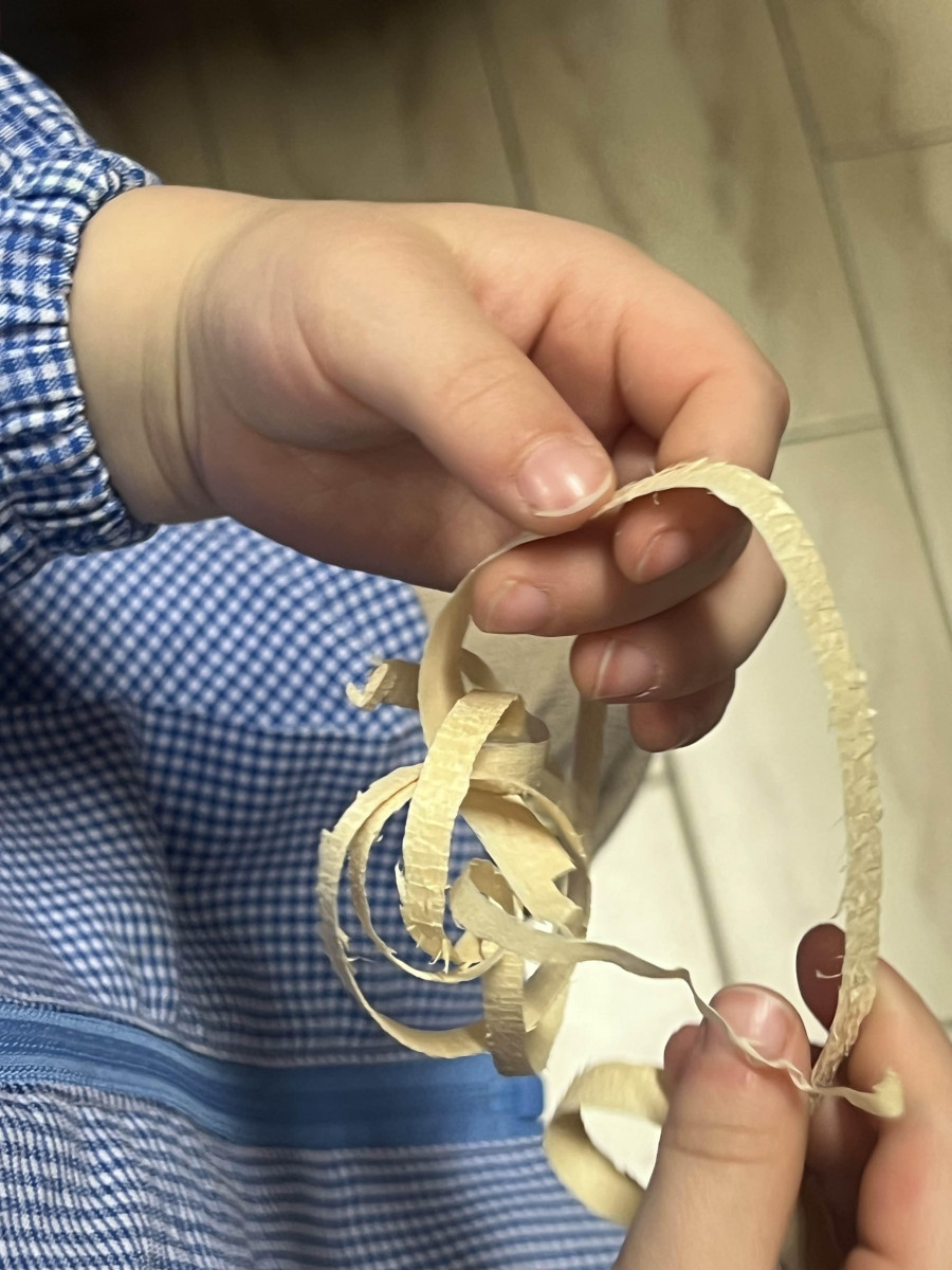 Abbiamo imparato molte cose e poi ci ha lasciato tanti legnetti con cui giocare e costruire.